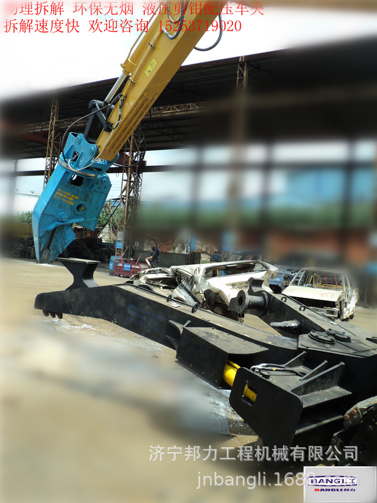 报废车拆解问题,正亟待解决的一大难题,邦力报废拆解机能快速完全拆解报废汽车,它的主要组成是挖掘机上配装液压剪钳,在底盘上安装液压夹,使挖掘机变身一多功能的报废汽车拆解机,8小时60台报废汽车拆解能力,可以迅速解决拆解企业报废车积压严重的问题,邦力报废汽车拆解机是你的拆解,欢迎咨询邦力报废汽车拆解机 欢迎致电详询: